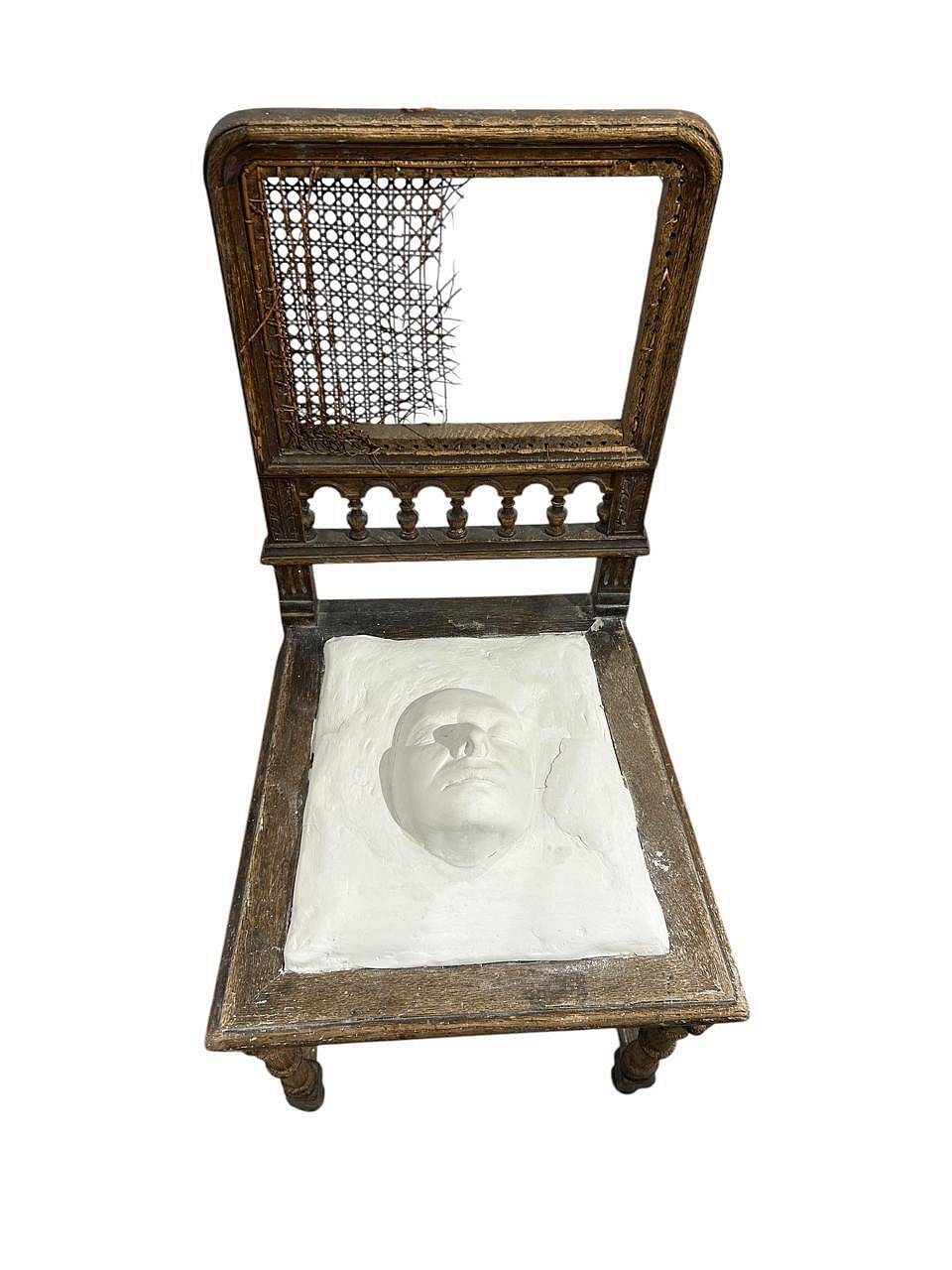 Наталия Спечинская. Автопортрет № 2. Из серии «Автопортрет». 2024. Найденные объекты (стул), гипс. 93х46х46